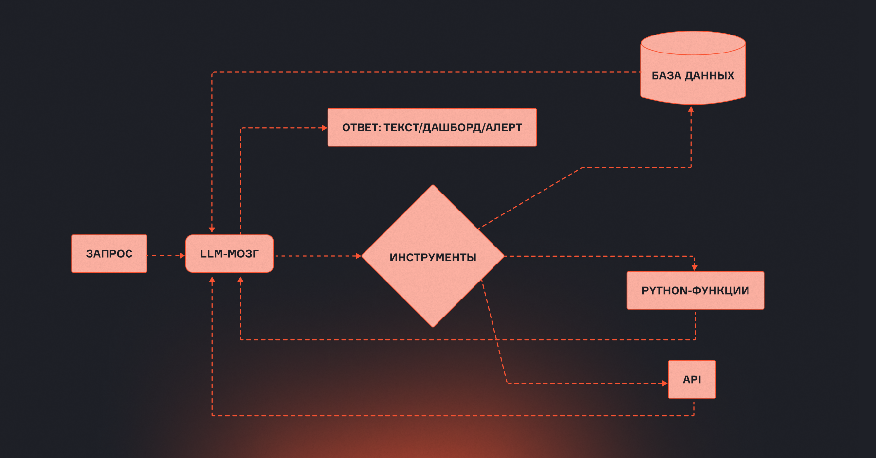 Идея простая: описываем роль агента, даем ему доступ к данным и разрешаем пользоваться инструментами. Все остальное берет на себя LLM.
