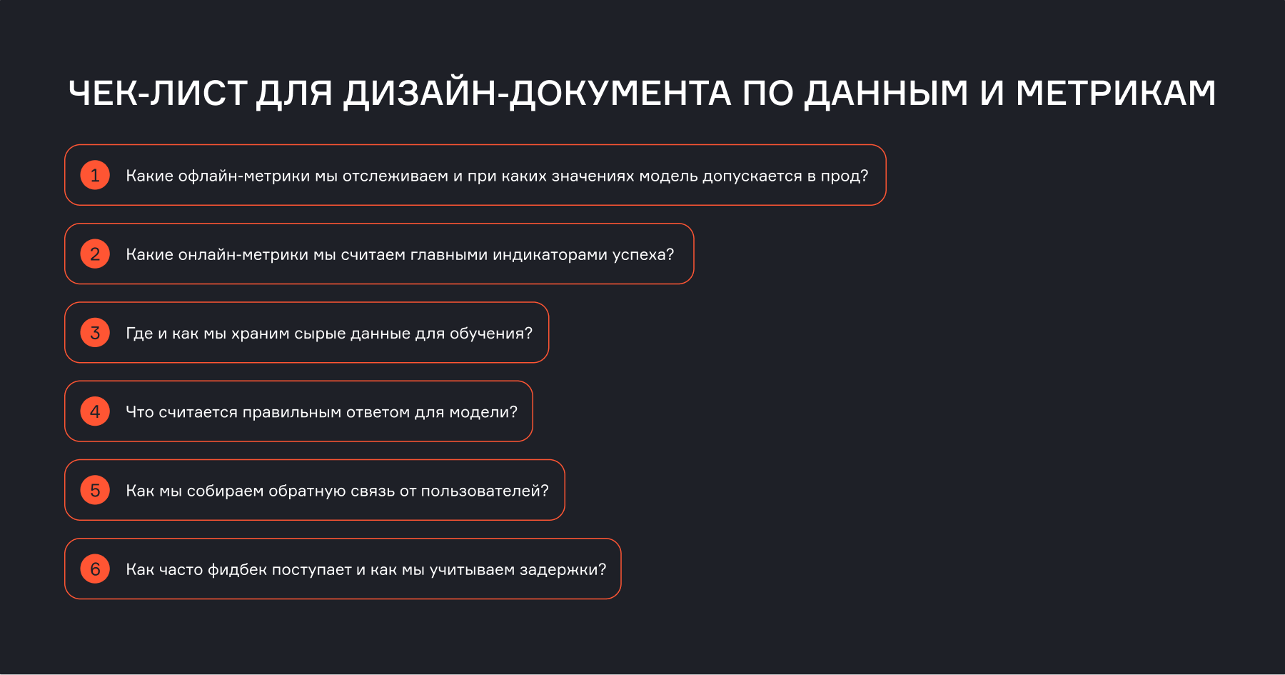 В этом разделе разберем три ключевых вопроса: как выбрать метрики качества ML, чем отличаются онлайн- и офлайн-измерения, и как спроектировать сбор данных, чтобы алгоритм мог учиться на своих ошибках.