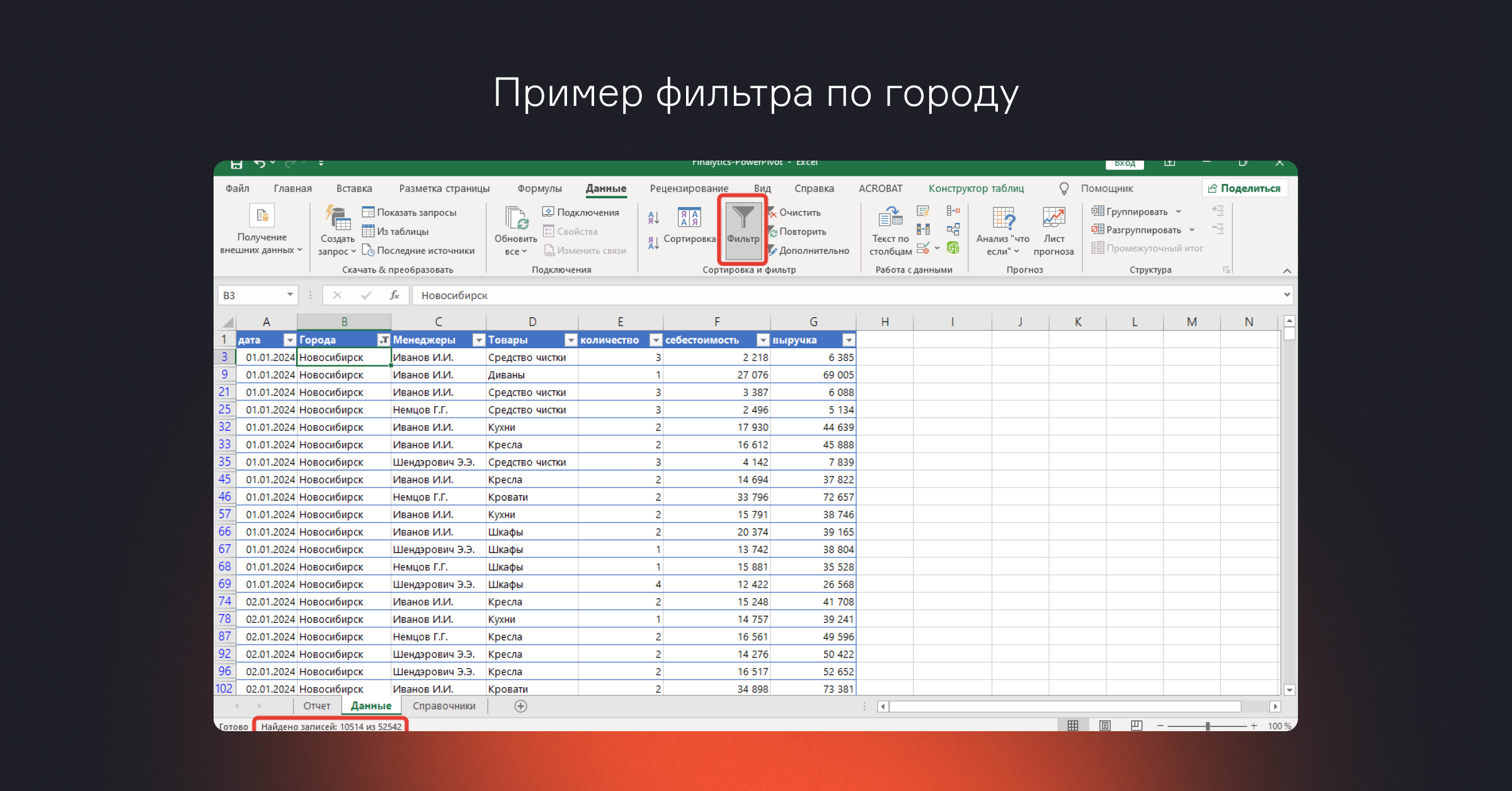 Например, если у вас в отчете собрана информация о продажах по разным городам и периодам, фильтр поможет вывести только определенный месяц или конкретный регион. Это значительно ускоряет анализ — вам не нужно вручную искать нужные строки или скрывать лишнее.