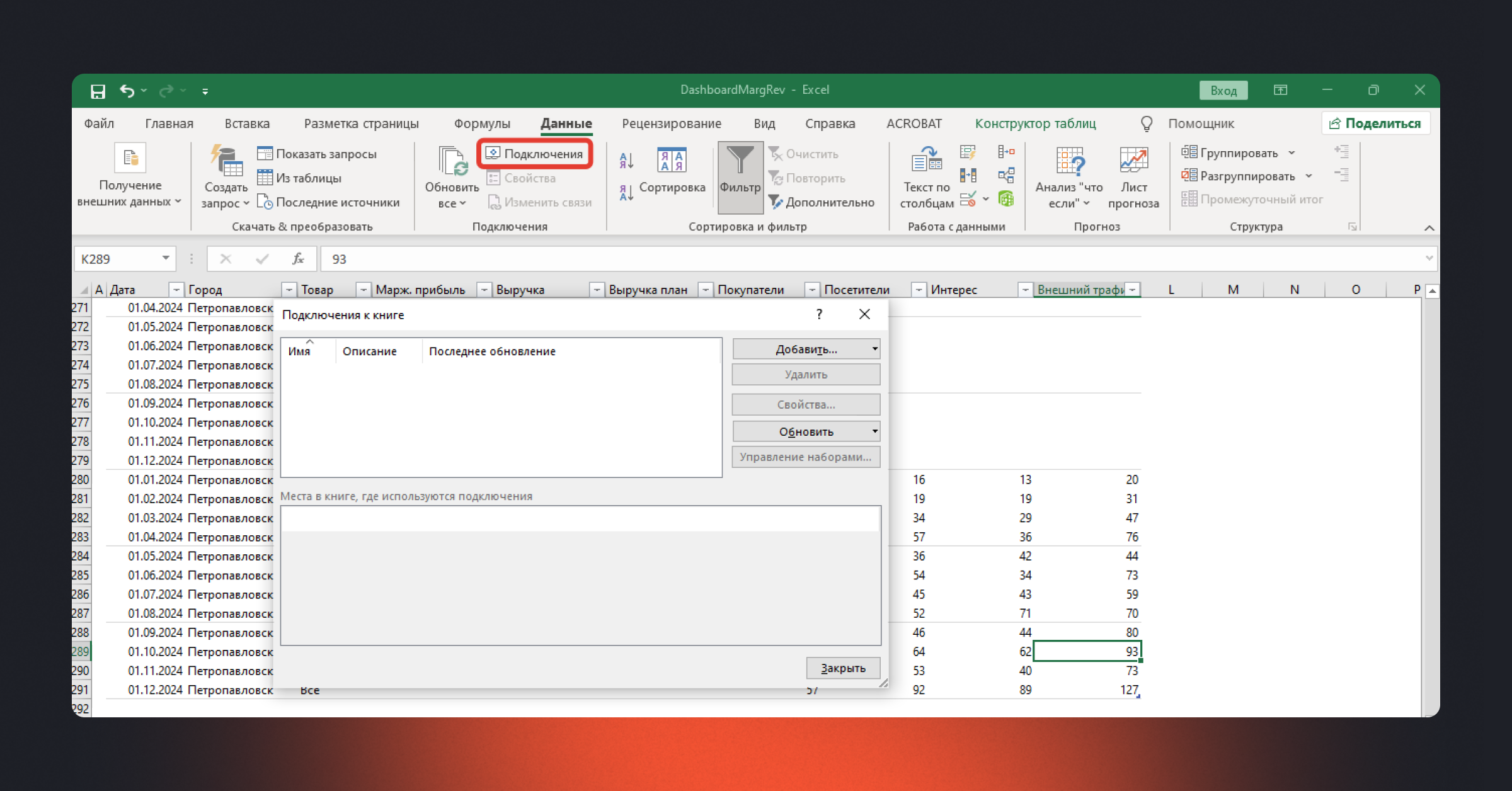 В разделе «Данные» — «Подключения» вы можете настроить параметры обновления для всех внешних источников данных. Например, настроить апгрейд при каждом открытии файла, задать интервал автообновления или включить фоновый режим, чтобы программа не зависала в процессе загрузки.
