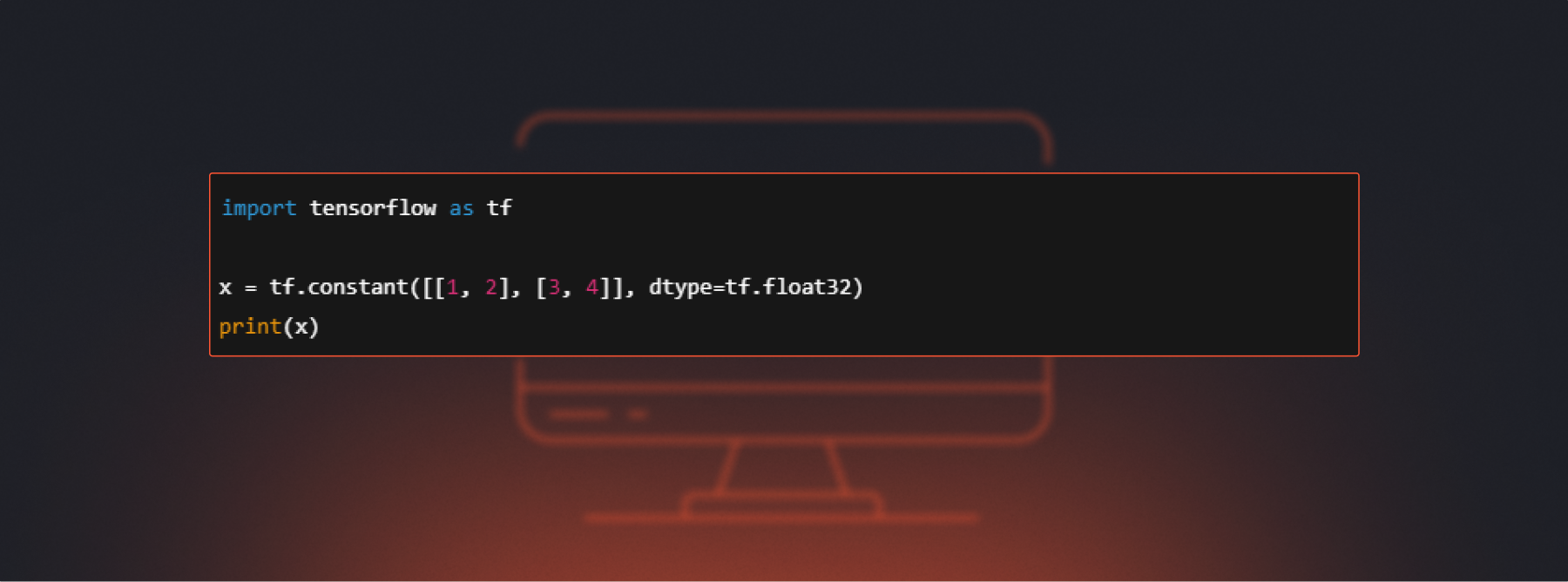 Здесь создается тензор размером 2*2 с числами 1, 2, 3 и 4.